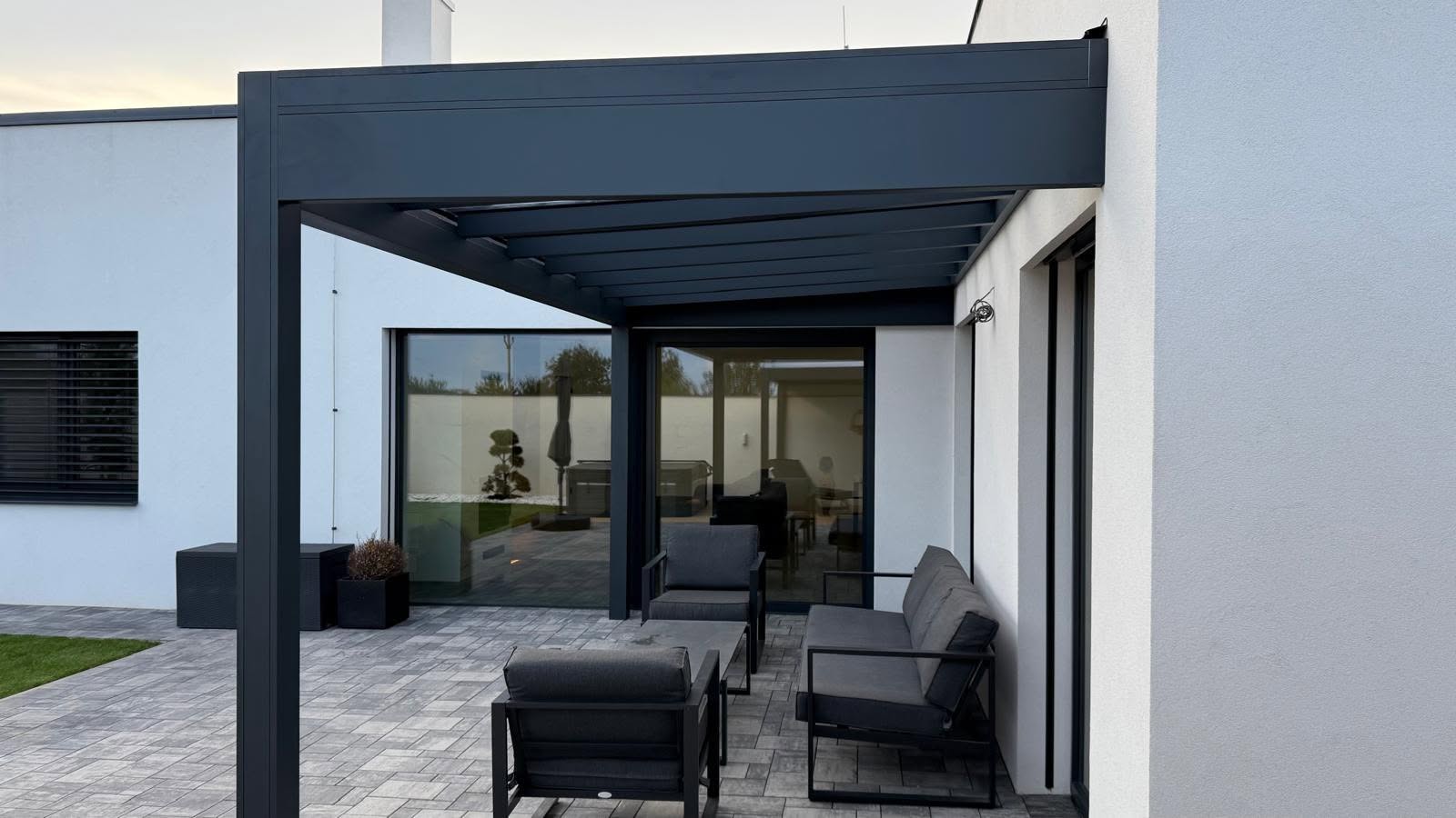 Součástí nabídky je také volitelné příslušenství, například integrované osvětlení nebo zabudované venkovní zásuvky, které ještě více zpříjemní každodenní využití pergoly.